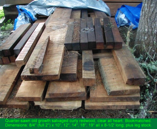 Browse our Curly Grains/Slabs Online Photo Gallery below to sample the salvaged redwood cuts we have available.