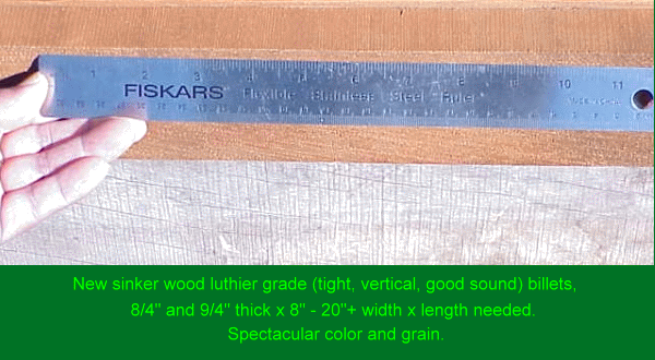 Redwood Salvage Sales provides Luthier-grade sinker wood billets sold in 8/4″ thickness