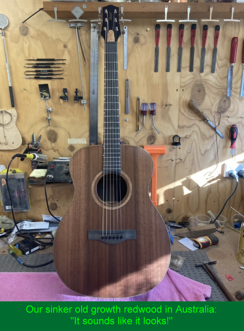 Our own California redwood is mentioned in the video below at (9:10). Listen to George Lowden’s great recommendation of its qualities: